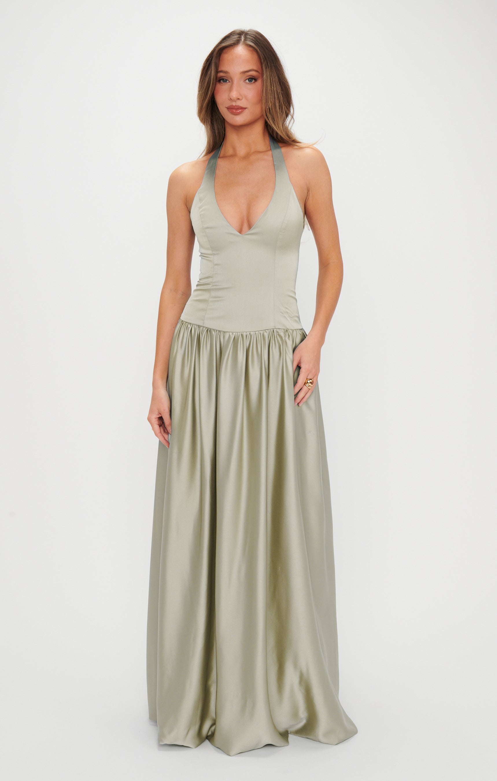 Eliza Maxi Dress ~ Moss Green Luxe Satin