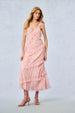 Our best-selling Radiance Dress returns as part of our Fragrance Capsule Collection, this time arriving in our beloved perfume prints. This dreamy maxi is designed with a printed chiffon fabric for the warm weather season. With an airy and breezy silhouette, the dress is stripped with delicate laces all over sourced from vintage textiles. The pieces begin with lace straps that fall to tiny flutter sleeves that fall to an easy skirt with tiny ruffle details all over.