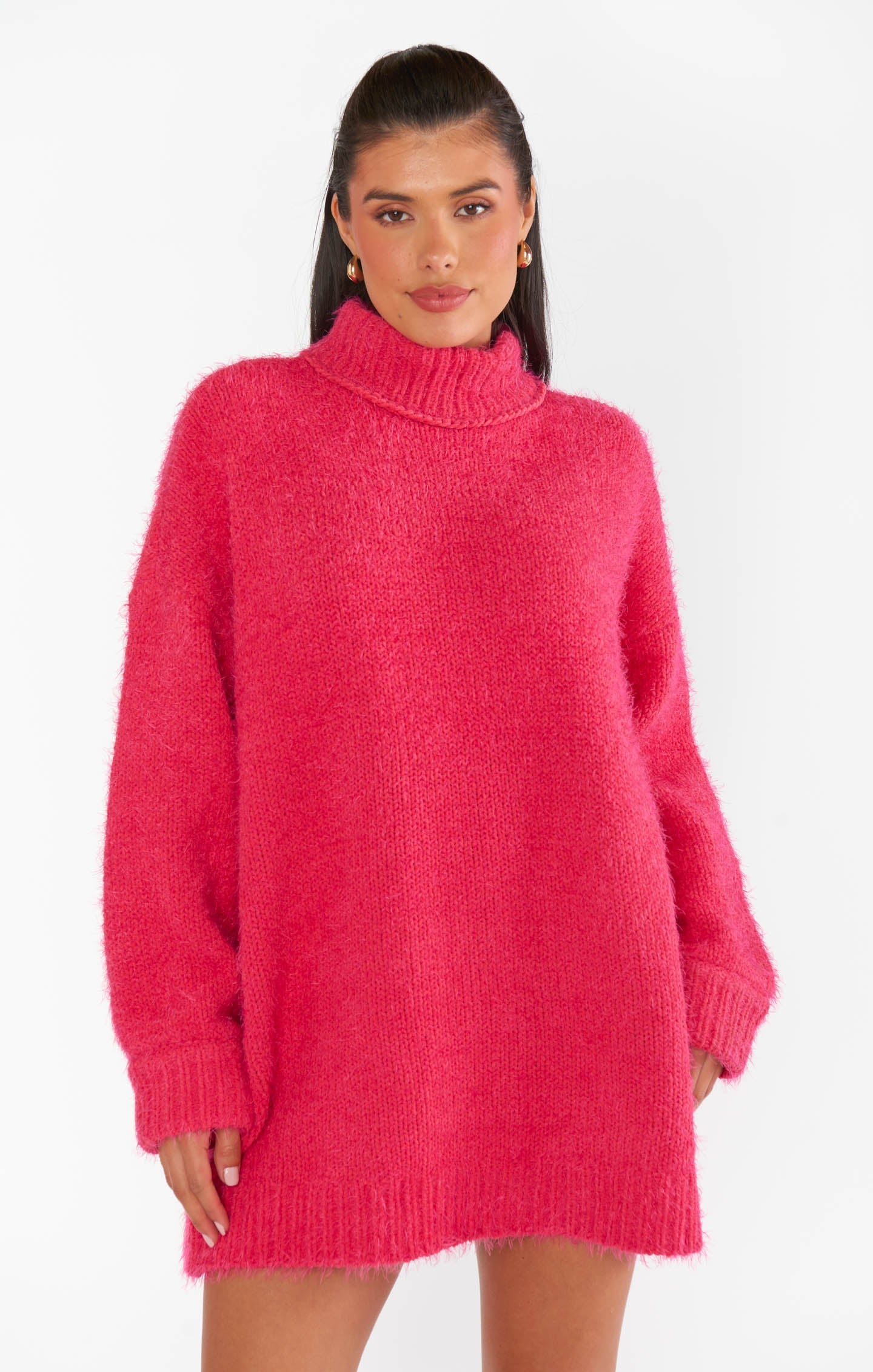 The Timmy Tunic Sweater is going to be your new chilly weather staple. Soft plush knit shapes this bright pink sweater with a cozy-yet-chic oversized fit. Style as a dress with knee high boots for a laidback look.